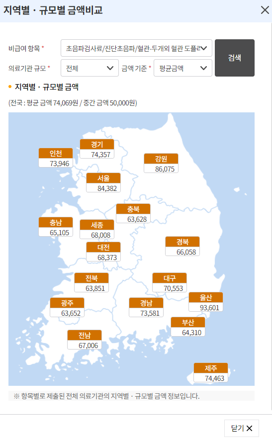 전국 경동맥 초음파 검사 비용